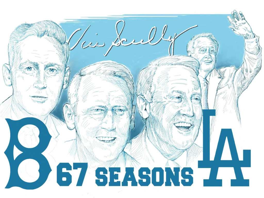 Vincent Edward Scully (November 29, 1927 – August 2, 2022) was an American sportscaster. He was best known for his 67 seasons calling games for Major League Baseball’s Los Angeles Dodgers, beginning in 1950 (when the franchise was located in Brooklyn) and ending in 2016.