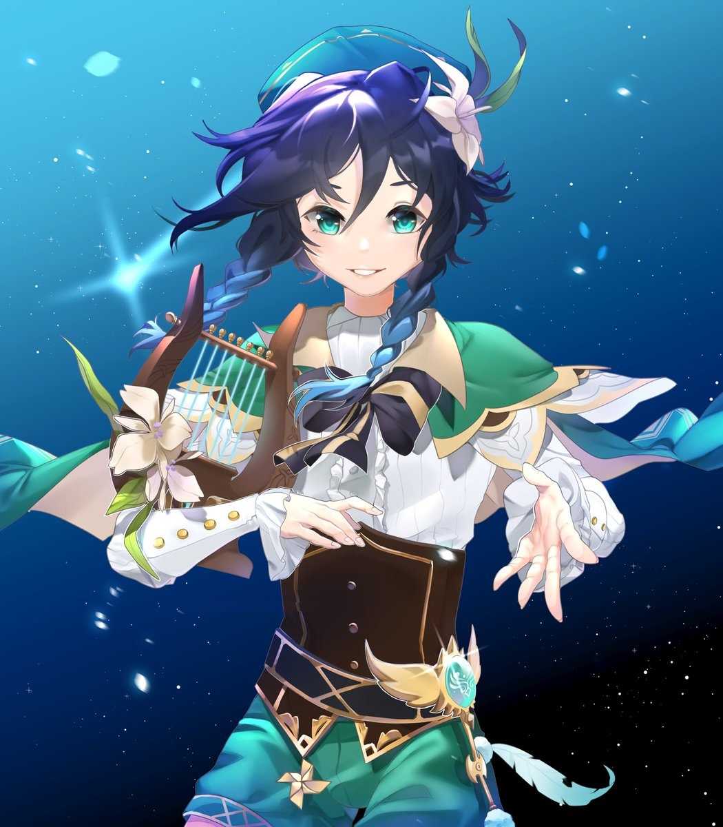 Venti is a playable Anemo character in Genshin Impact. He is a free-spirited, wine-loving bard in Mondstadt and the current mortal vessel of Barbatos, the Anemo Archon.